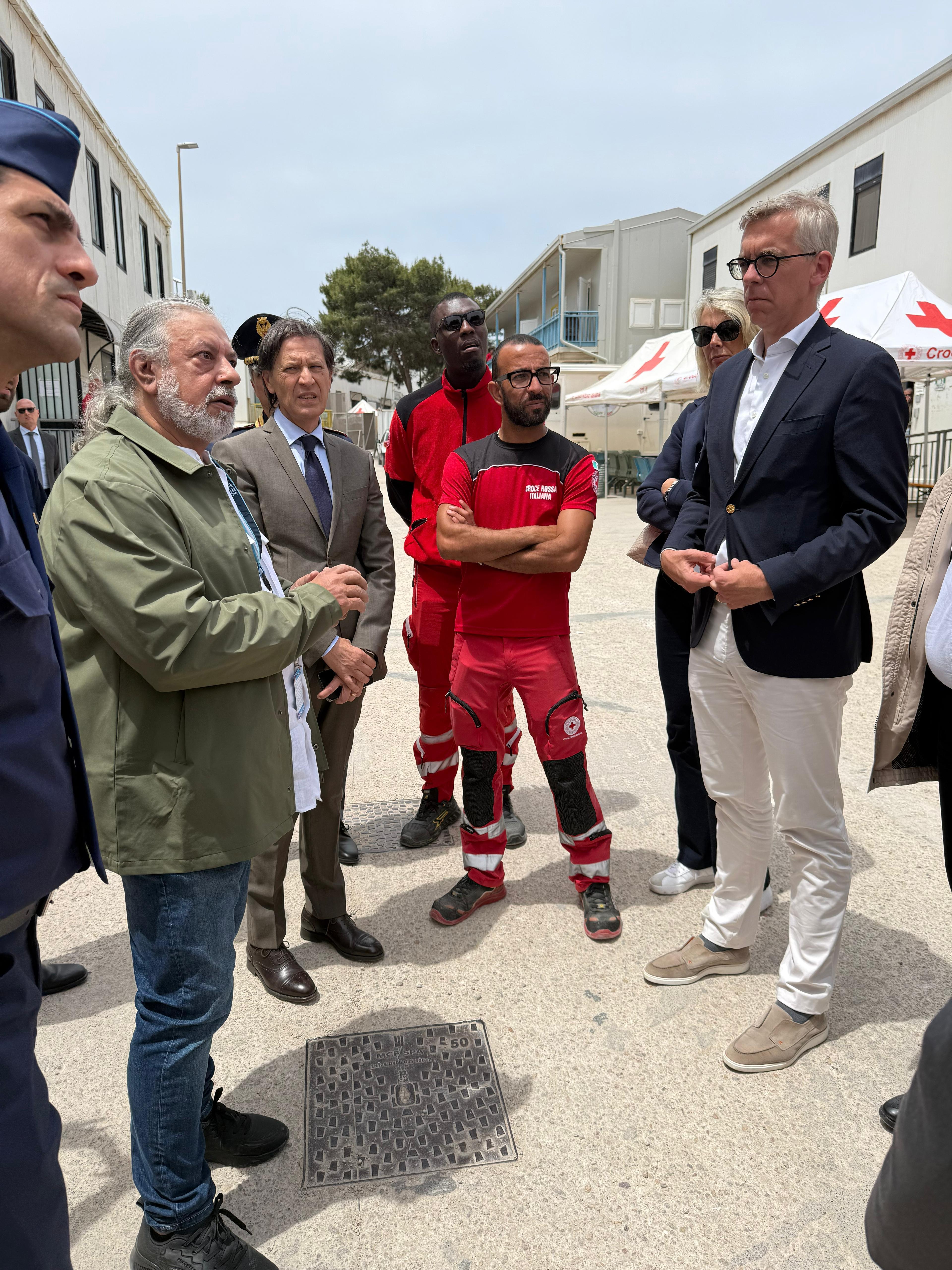 Le ministre a également eu l'occasion de visiter le Centre de coordination internationale (ICC) et le Centre de coordination nationale (NCC) italiens, ainsi que le centre d'accueil de Lampedusa, où il a rencontré les différentes organisations responsables de l'accueil de migrants à leur arrivée.