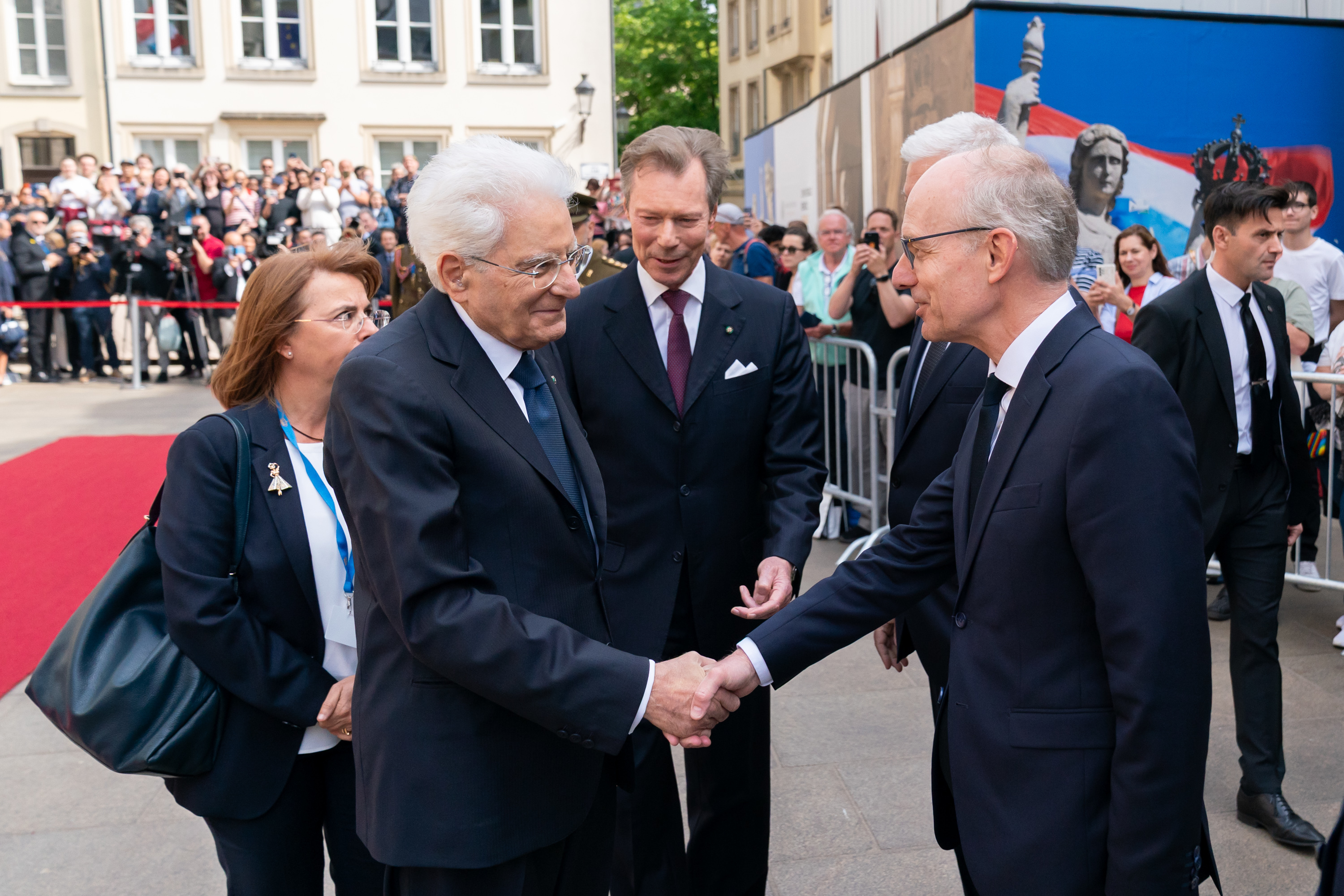 Martedì 10 giugno 2025, alle ore 16:30, il Capo di Stato italiano e la sua delegazione sono accolti ufficialmente sul piazzale del Palazzo Granducale da LL.AA.RR. il Granduca e la Granduchessa. La cerimonia include gli onori militari, l'esecuzione degli inni nazionali, la passata in rassegna delle truppe e la presentazione delle autorità lussemburghesi e italiane.